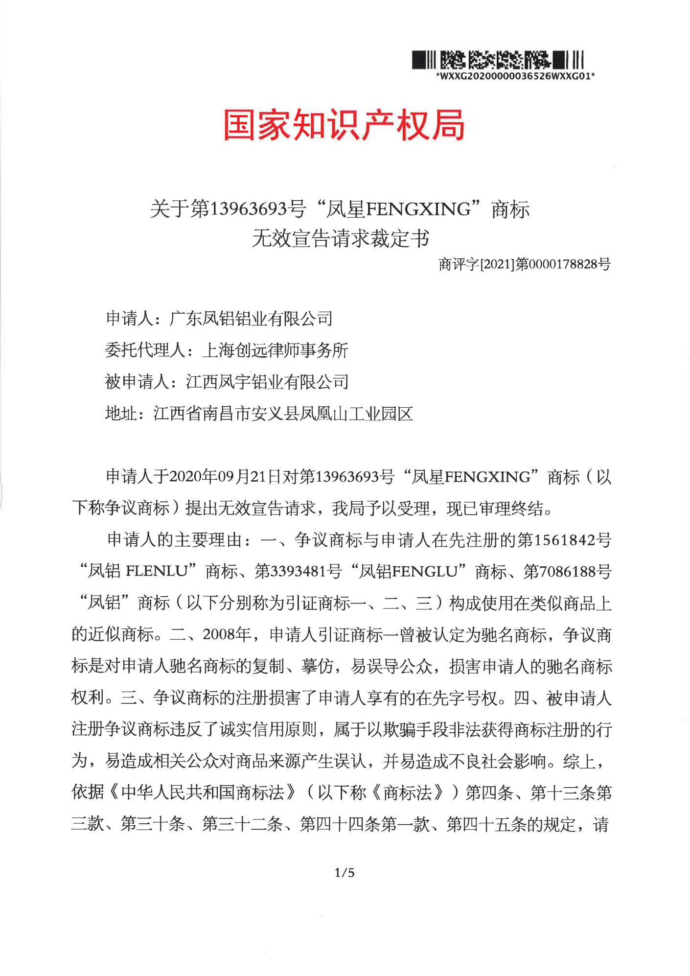 忻州辉知队 | 国家知识产权局:“凤星”商标无效
