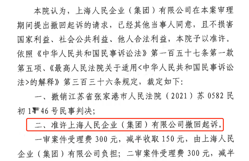 忻州胜诉佳讯 | 人民企业系列案苏州六案上海人民公司撤诉